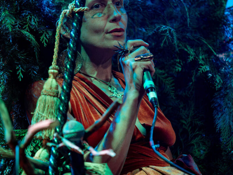 Mella Faye hosts and MC’s with a sharp tongue and keen eye on the clock, encouraging everyone to think for themselves and for others. We begin in her vestibule as she sets out what will unfold during the evening, gives some house rules and plenty of encouragement. We’re about to enter the Garden of Wishes. Should we be careful what we wish for? Let’s see.